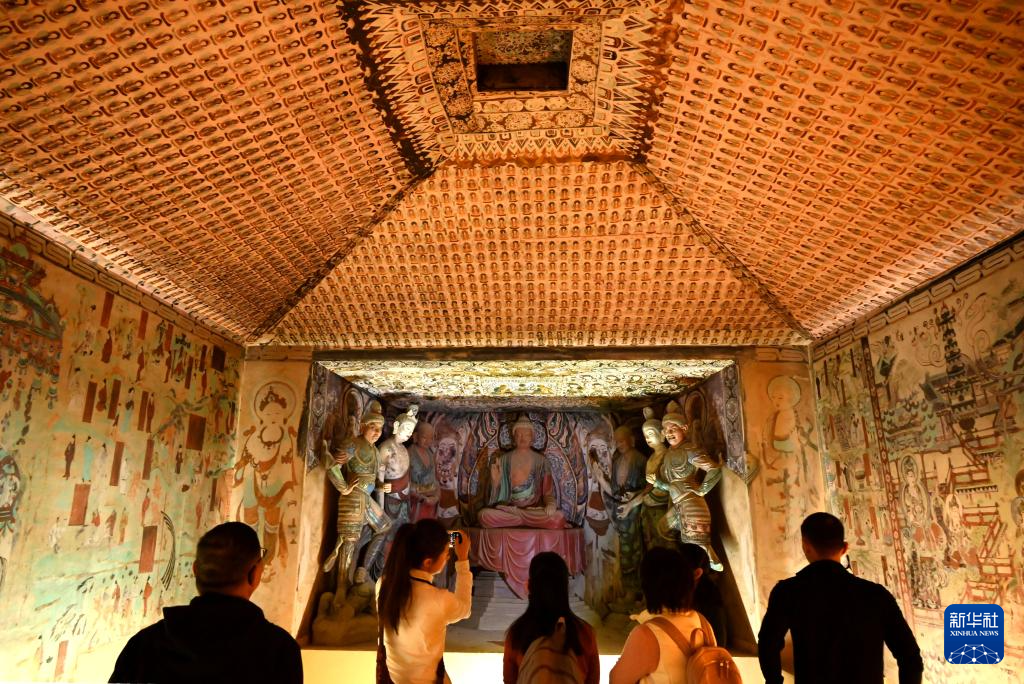 4月6日,游客在甘肃省敦煌市博物馆参观文物展。