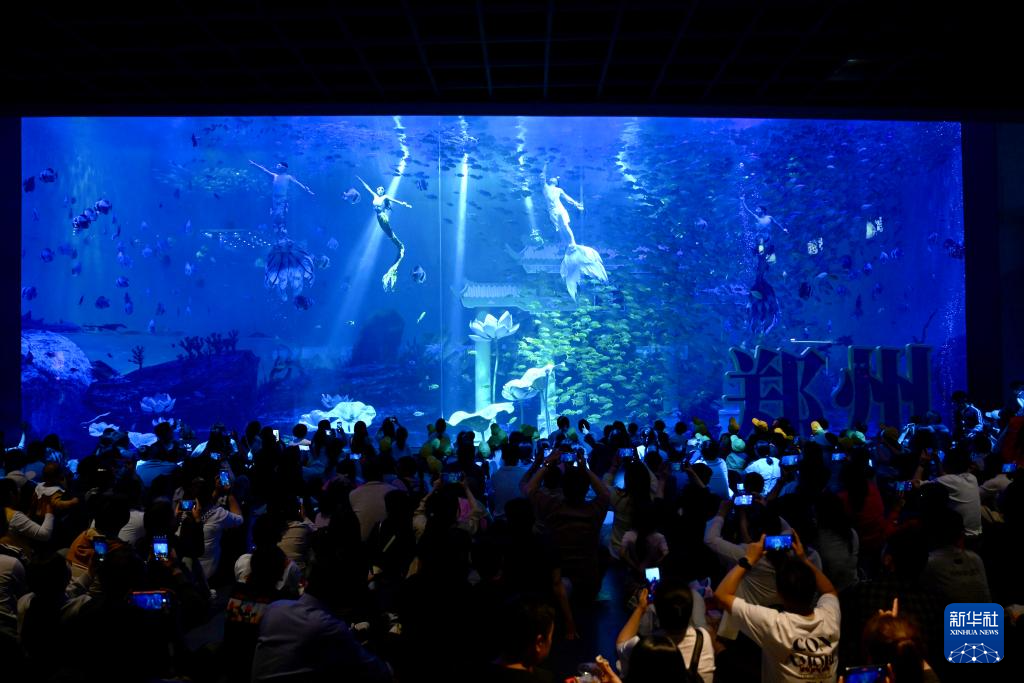 4月6日,游客在河南省郑州市中牟县海昌海洋公园观看演出。