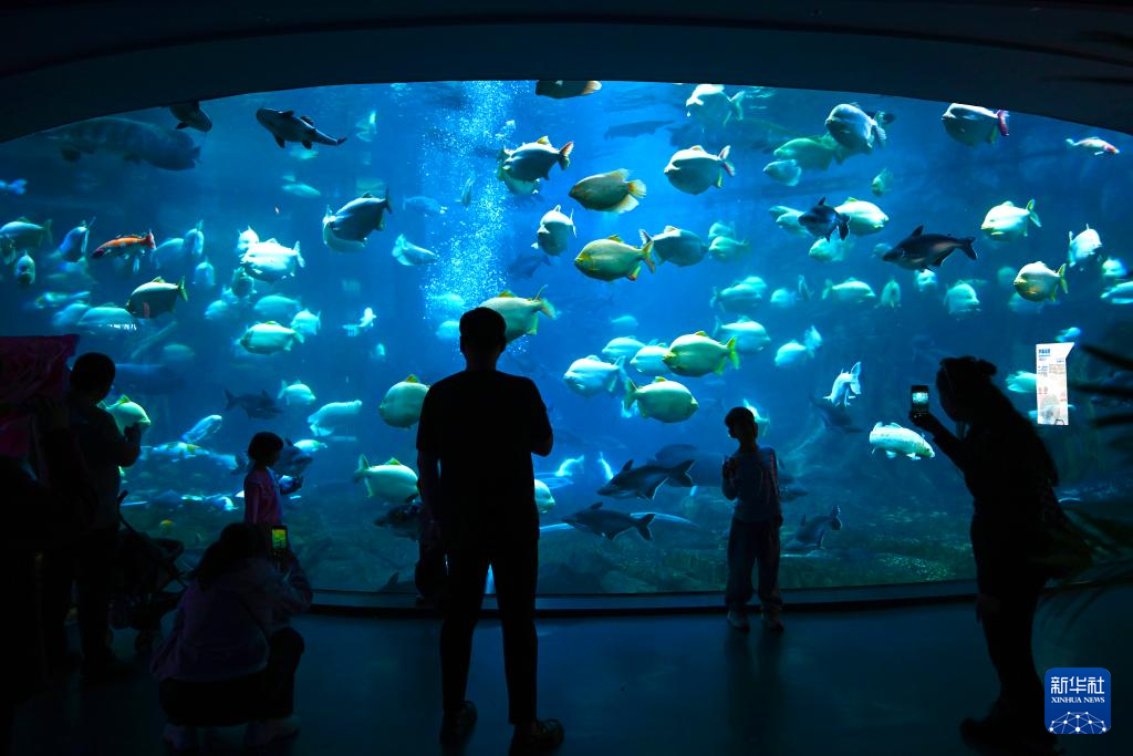 4月6日,游客在河南省郑州市中牟县海昌海洋公园游玩。