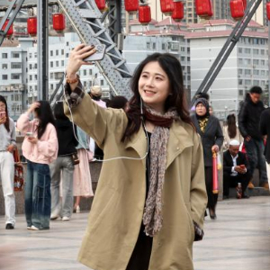 4月6日,游客在甘肃省兰州市中山铁桥拍照打卡。