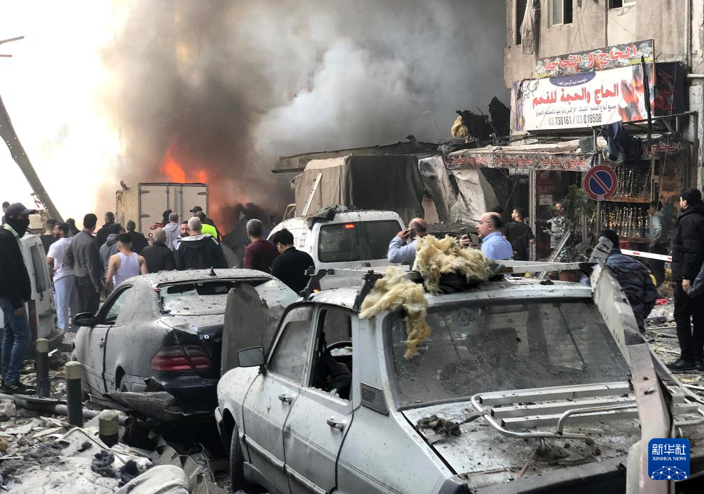 4月8日,在黎巴嫩首都贝鲁特,以色列发动的空袭导致汽车和建筑被毁(手机照片)。