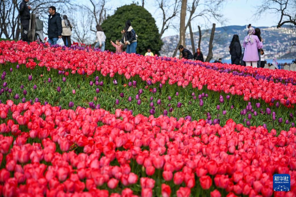 4月11日,在土耳其伊斯坦布尔,游客来到埃米尔安公园赏花休闲。