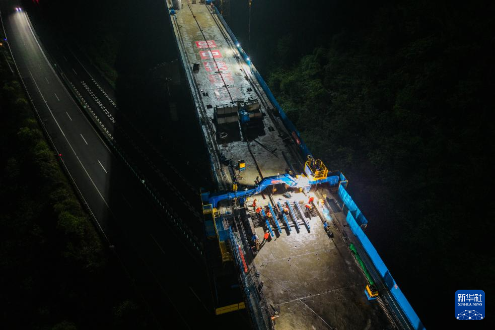 邵永高铁控制性工程刘家院子跨二广高速特大桥连续梁合龙-新华网