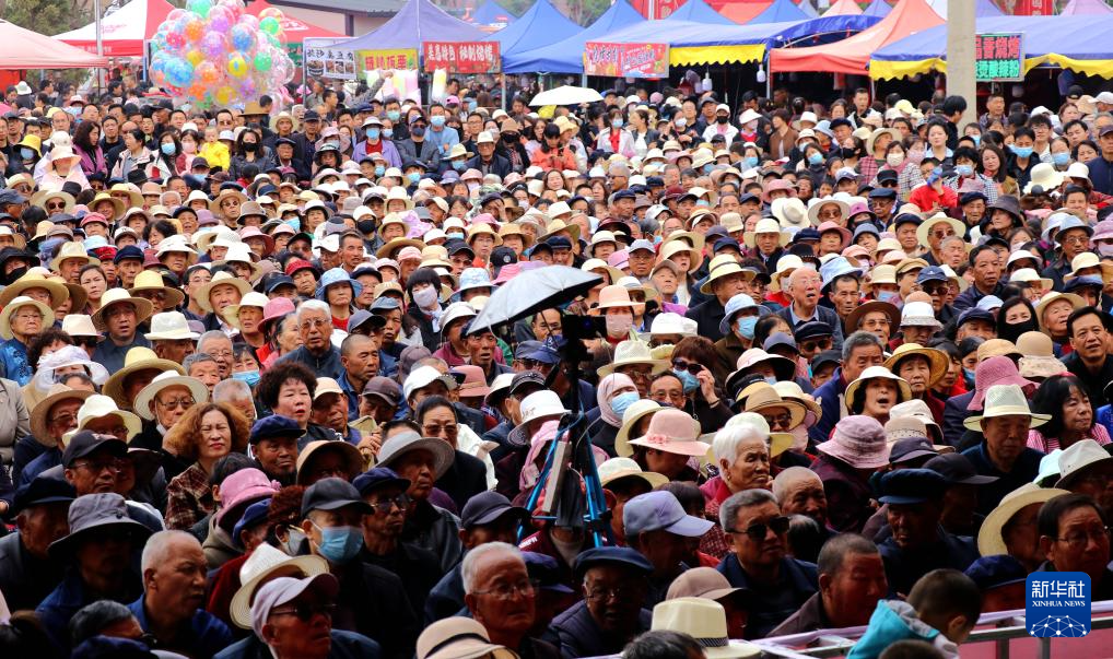 4月12日,在静宁县八里镇高城寨村,群众在观看秦腔演出。