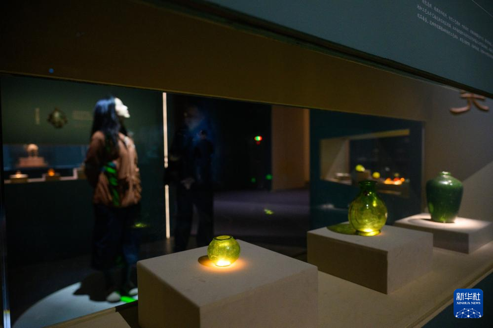 这是展出的玻璃器皿(4月13日摄)。
