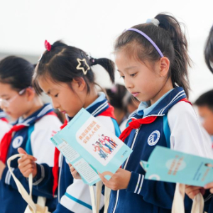 4月13日,在济南国际机场,学生在活动现场学习国家安全知识。