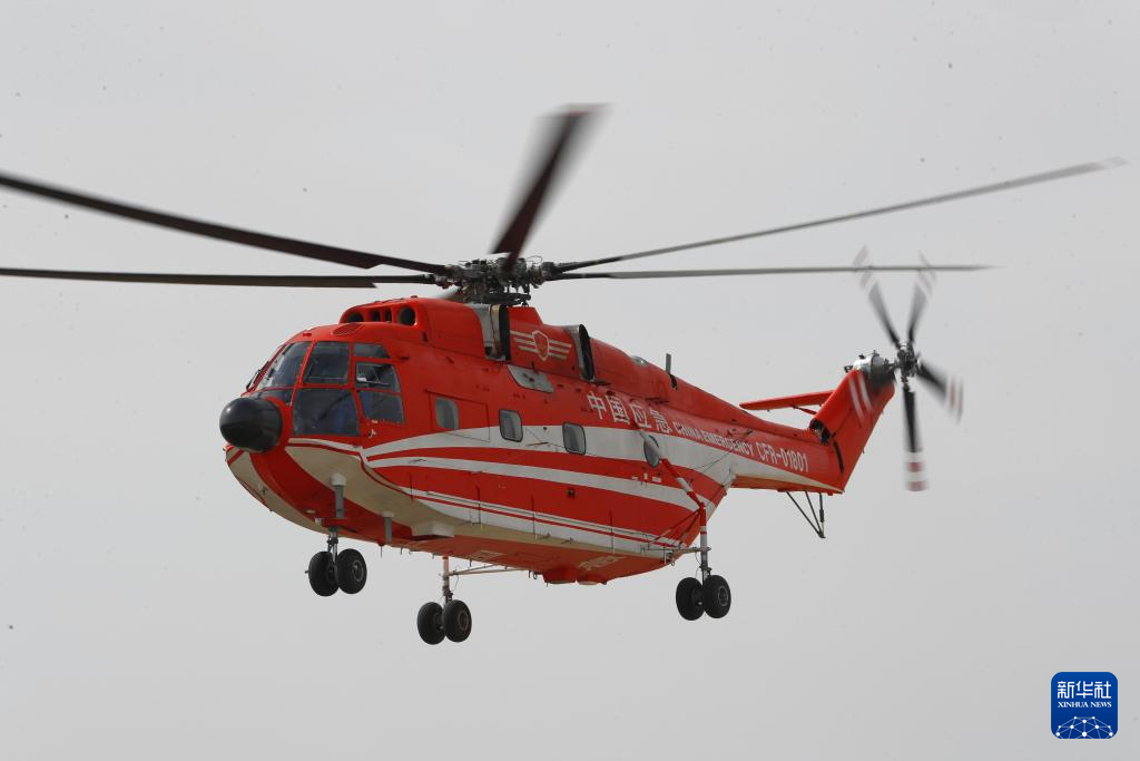 4月15日,在位于黑龙江省大庆市的国家消防救援局大庆航空救援支队跨昼夜救援演练现场,直升机开展飞行演练。