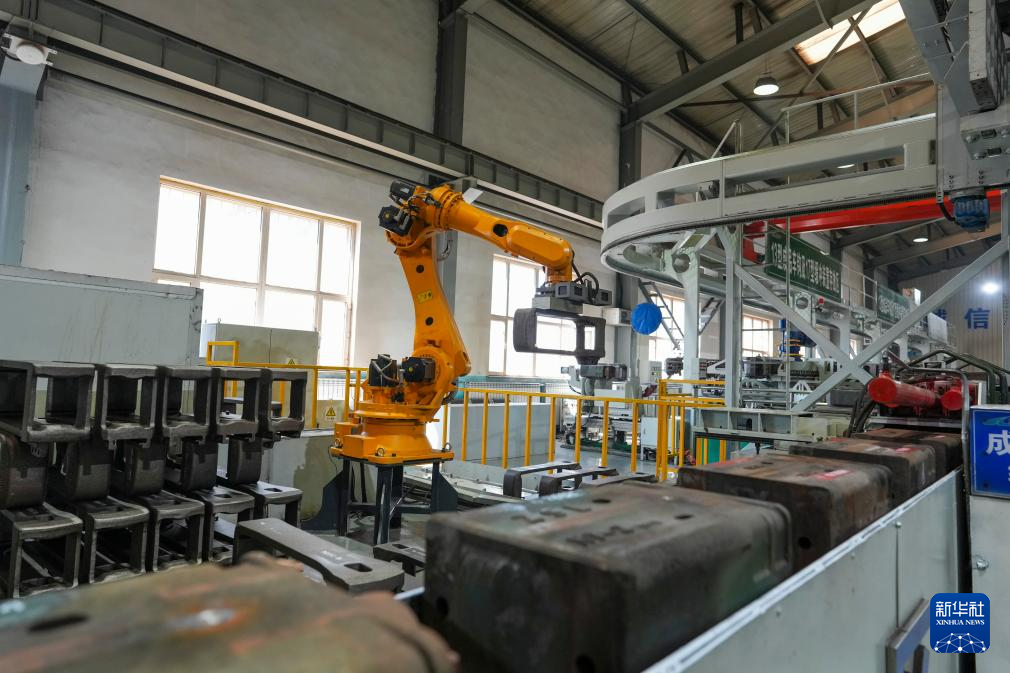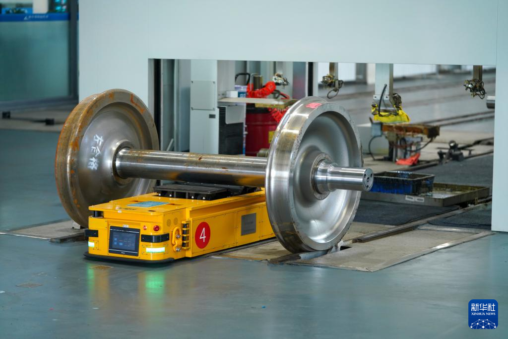 在中国铁路哈尔滨局集团有限公司哈尔滨车辆段轮轴车间,配备AI智能识别系统的全自动检修流水线对火车轮轴进行检修作业(4月15日摄)。