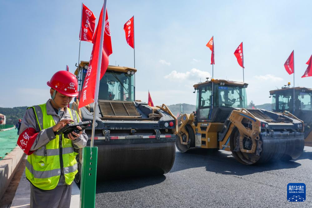 近日,在G5京昆高速广元至绵阳段扩容工程路面工程施工现场,中铁五局创新采用无桩化智能摊铺机自主作业、无人碾压集群协同推进、数字化平台实时管控等技术手段,构建高集成度路面智能建造体系,进一步提升施工效率,降低设备能耗,以科技创新赋能国家骨干交通工程建设。