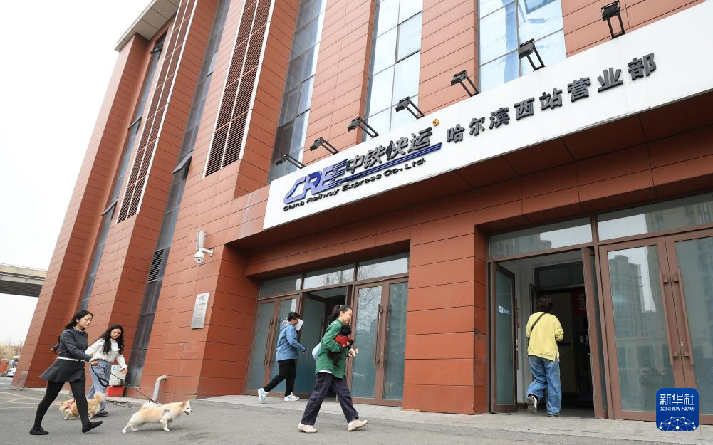 4月19日,旅客走进中铁快运哈尔滨西站营业部办理“爱宠行”托运服务。