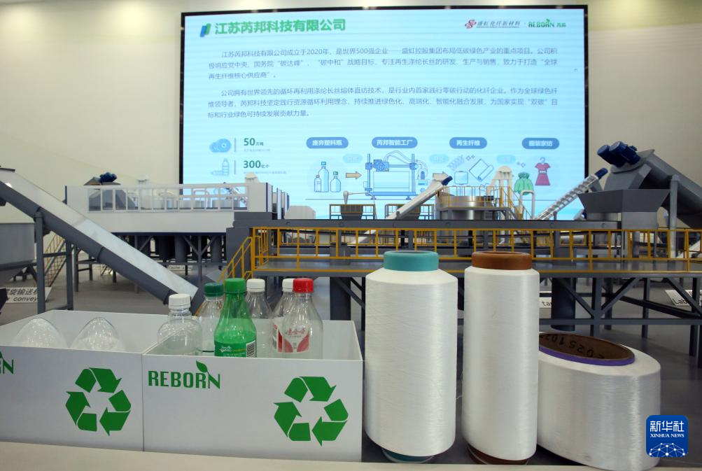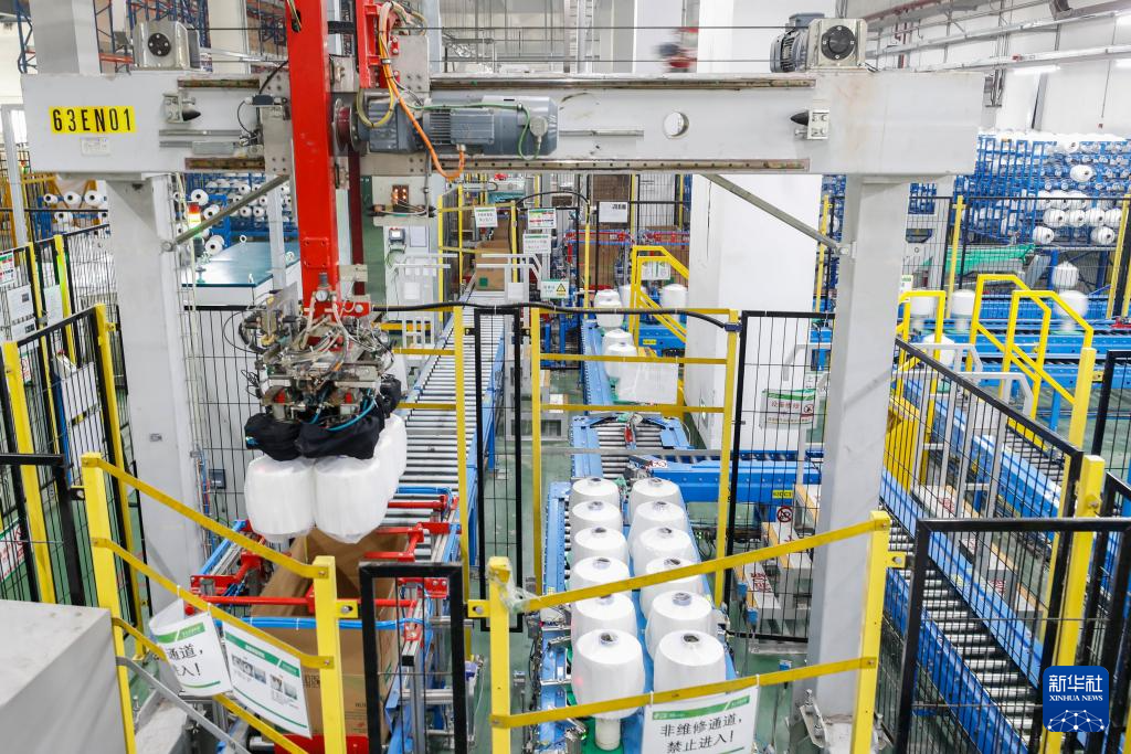 这是芮邦科技有限公司的智能化生产车间(资料照片)。成立于2020年的芮邦科技有限公司位于江苏省宿迁市泗阳县,专注再生涤纶长丝的研发、生产与销售。公司拥有世界领先的循环再利用涤纶长丝熔体直纺技术,是行业内率先践行零碳行动的化纤企业。