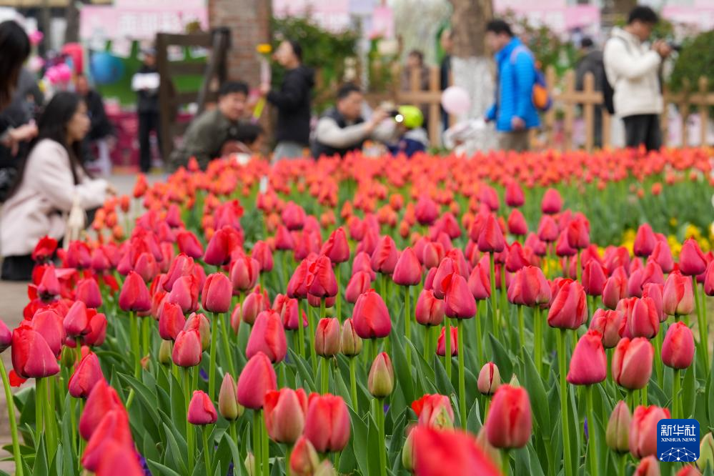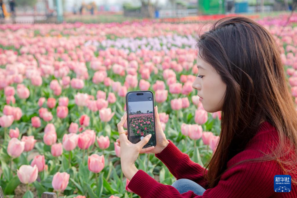 游客在盐城大丰荷兰花海景区拍摄郁金香(2026年3月29日摄)。