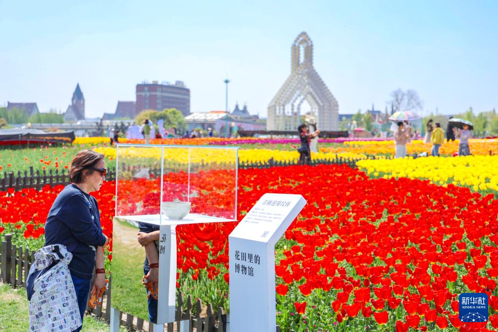 游客在盐城大丰荷兰花海景区休闲游玩(2026年4月15日摄)。