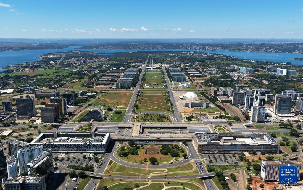 这是4月19日在巴西首都巴西利亚拍摄的城市中轴线和周围部分区域景观(无人机照片)。