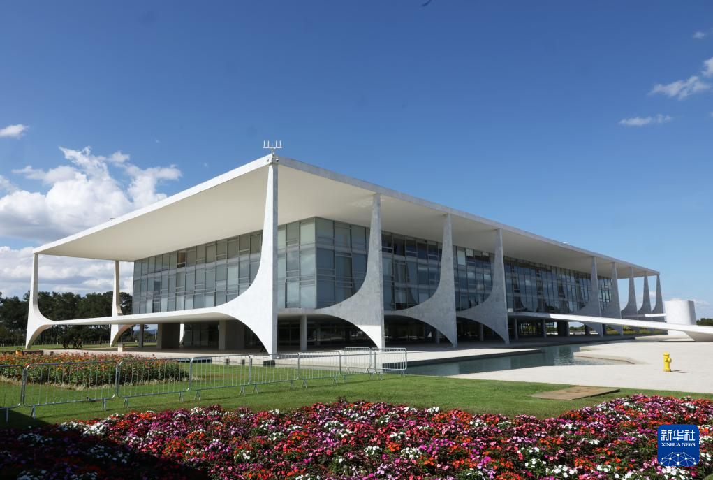 这是4月20日在巴西首都巴西利亚拍摄的总统府“高原宫”。