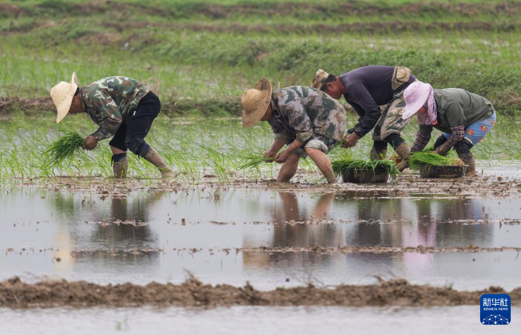 眼下正值春耕大忙时节,福建省福州市连江县广大粮农抢抓农时、不负春光,全面铺开早稻秧苗栽插作业,田野间呈现出一派生机盎然的春日春耕图景。