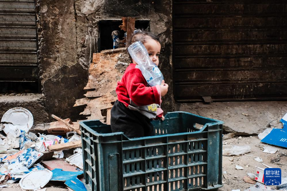 4月21日,儿童在埃及开罗的“垃圾城”内玩耍。