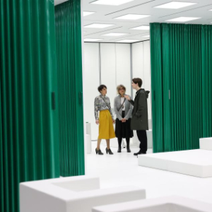 4月21日,在意大利米兰国际会展中心,人们在米兰家具展上观看中国品牌“院半”与南非建筑师事务所SAOTA联合推出的户外设计方案。
