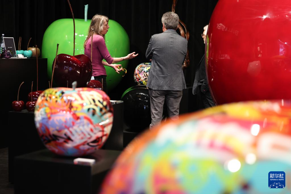 4月22日,在意大利米兰国际会展中心,人们在米兰家具展上触摸一款凳子产品。