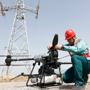 为应对春季沙尘天气对电网运行稳定带来的安全隐患,国网银川供电公司输电运检中心开展供电线路瓷质绝缘子串无人机冲洗作业。