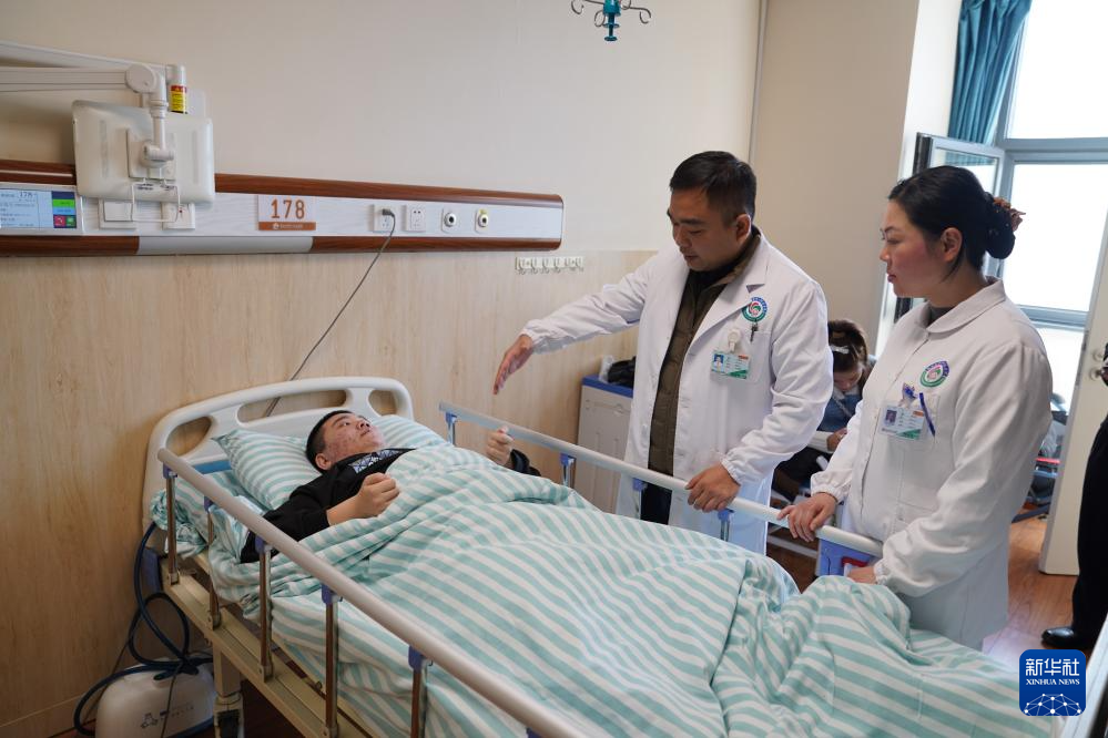 2025年12月15日,邓先生在接受脑机接口手术前,医生与他交流,了解他的身体情况,为手术做准备。