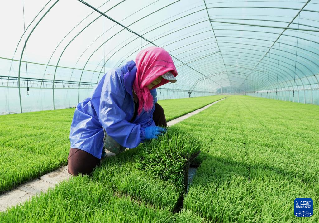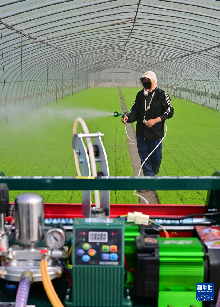 时下正值春季农事关键期,河北省唐山市曹妃甸的农民抢抓农时进行水稻育秧等工作,田间地头一派繁忙景象。