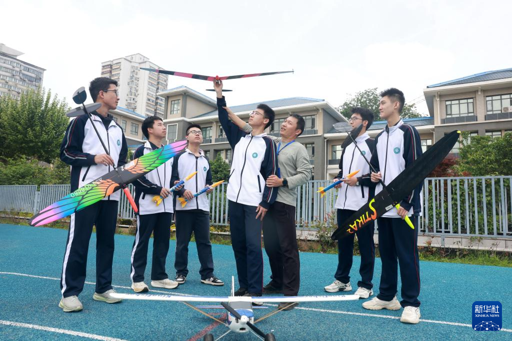 4月24日,在湖北省武昌实验中学,老师通过模型给学生们介绍航天知识。
