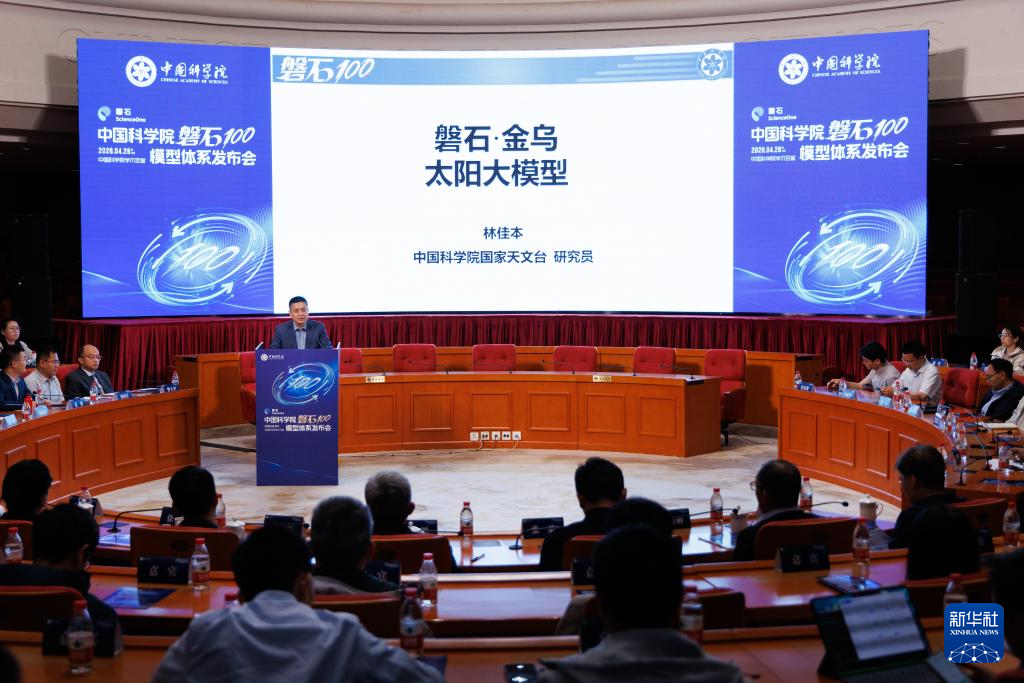 4月28日,在发布会现场,中国科学院国家天文台林佳本研究员发布“磐石·金乌”大模型。
