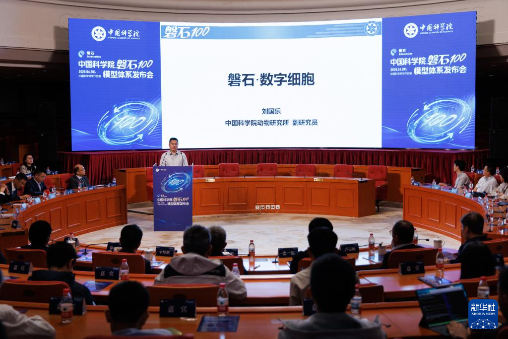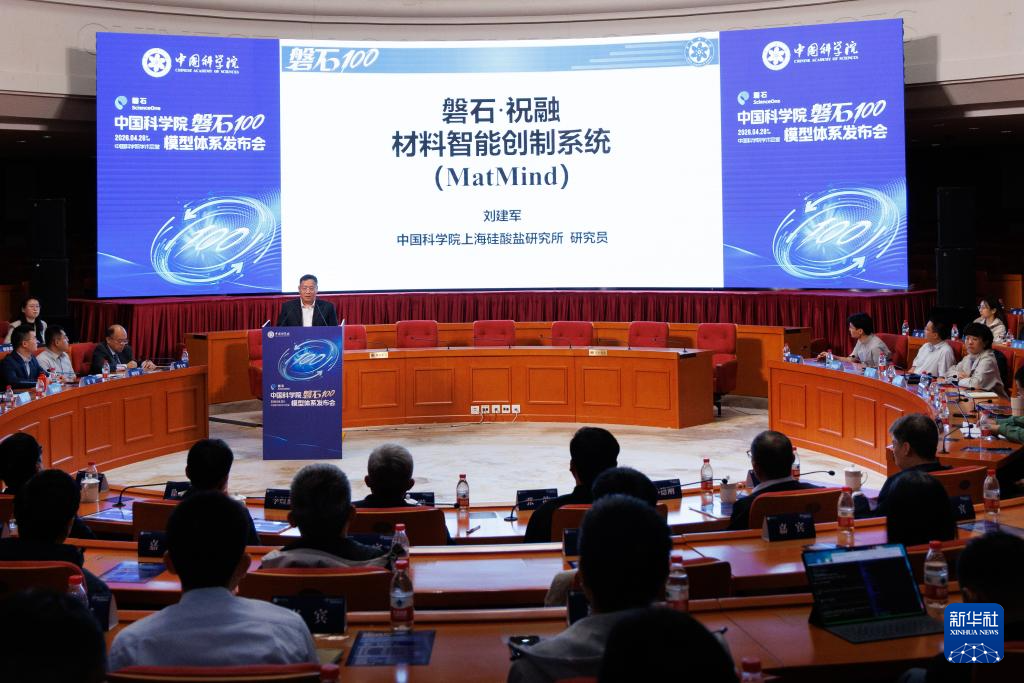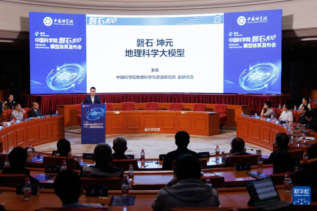 4月28日拍摄的中国科学院“磐石100”模型体系发布会现场。