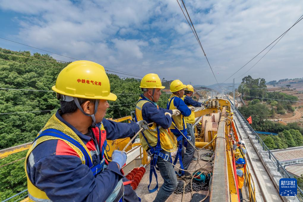 4月28日,渝昆高铁云南段全线首条接触网导线架设任务顺利完成,标志着渝昆高铁云南段正式进入全线接触网导线架设阶段。