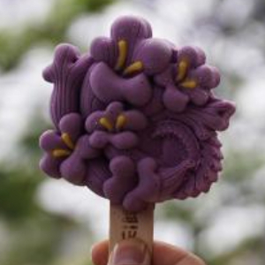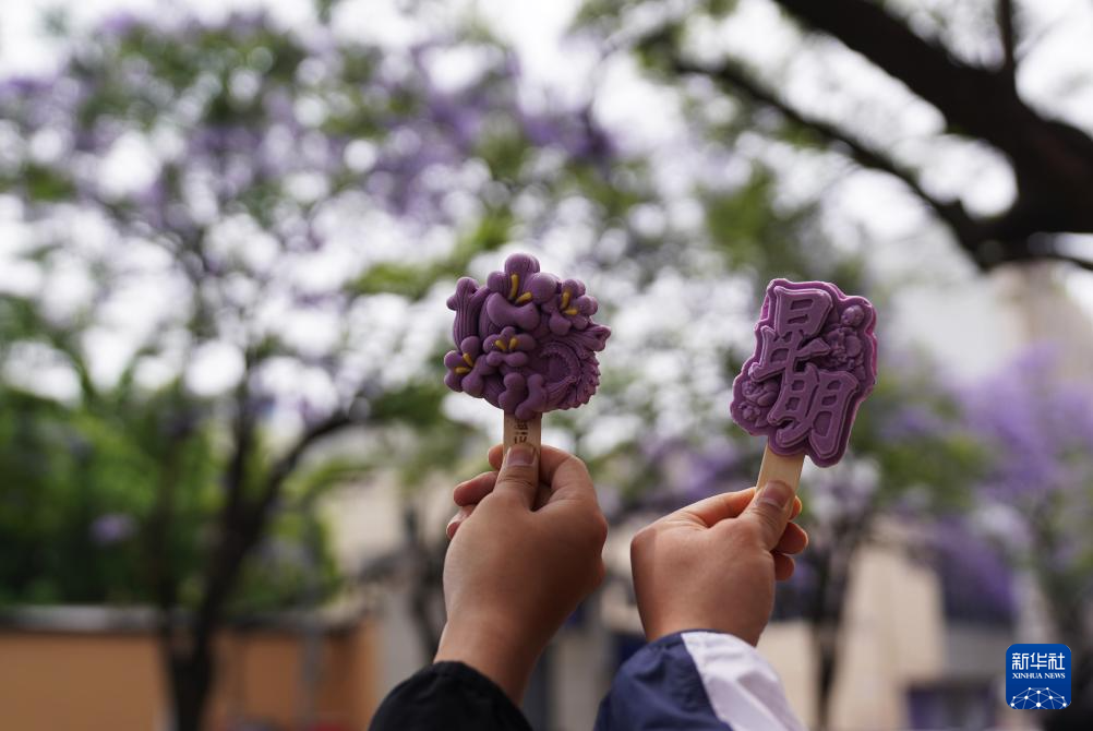 4月26日,游客在昆明市教场中路展示文创雪糕。