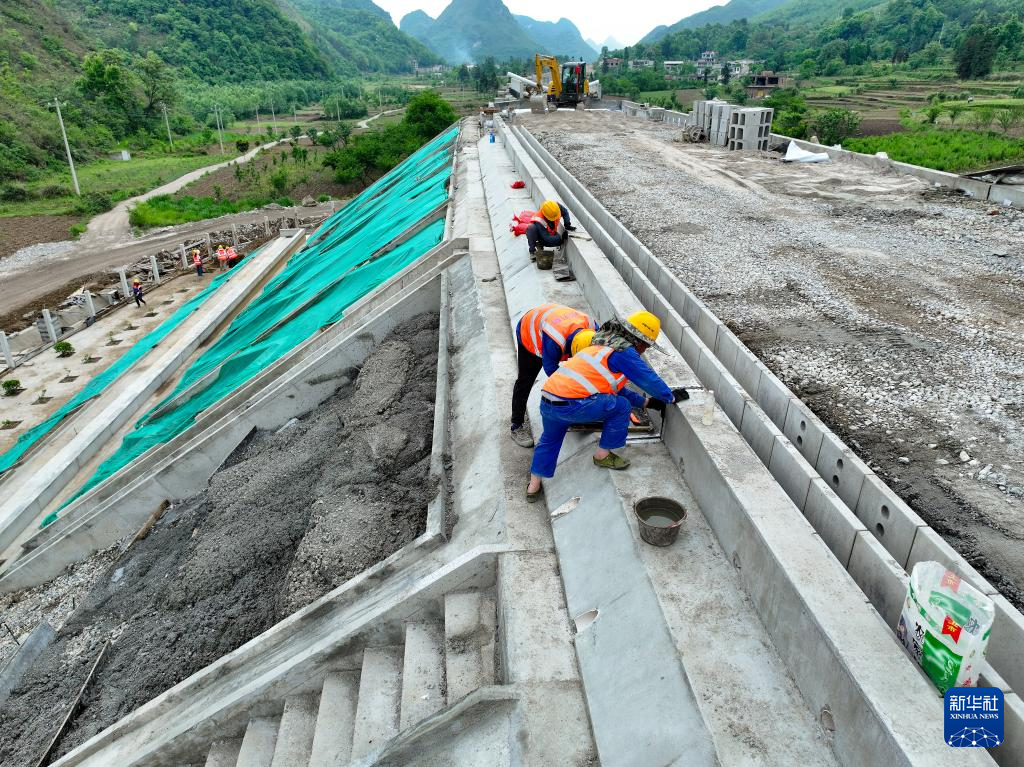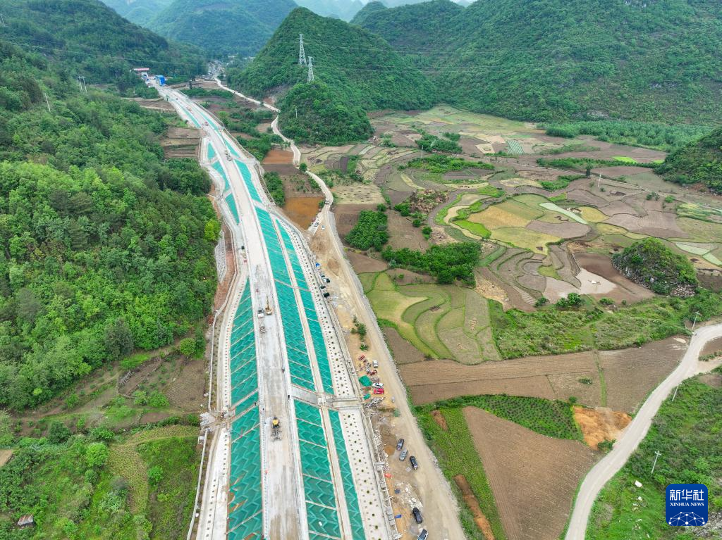 4月28日,中铁八局工作人员在进行路基施工作业(无人机照片)。
