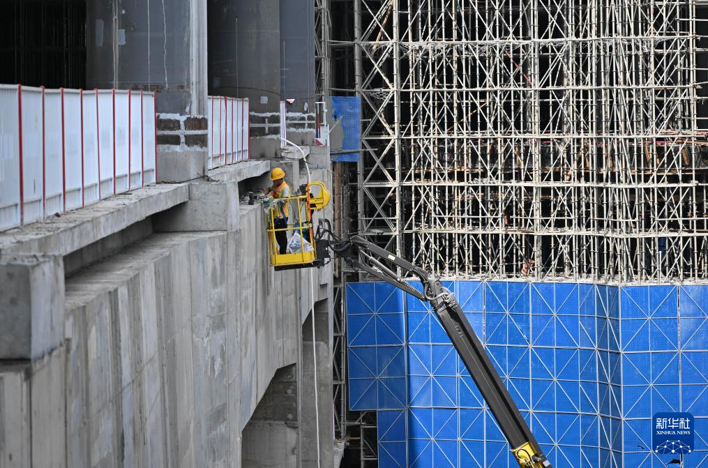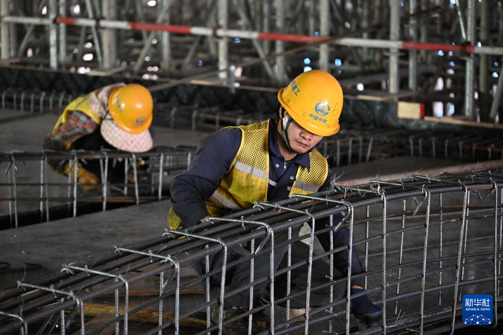 4月28日,中铁建工作业人员在深汕站内部施工作业。