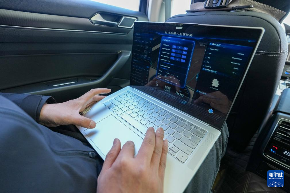 4月28日,北大荒集团黑龙江友谊农场有限公司一旱田地块上,农业技术人员在监测大马力无人驾驶智能农机的作业参数。