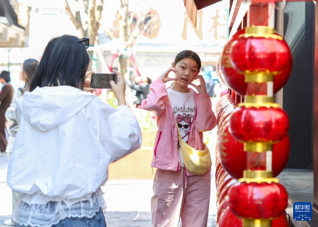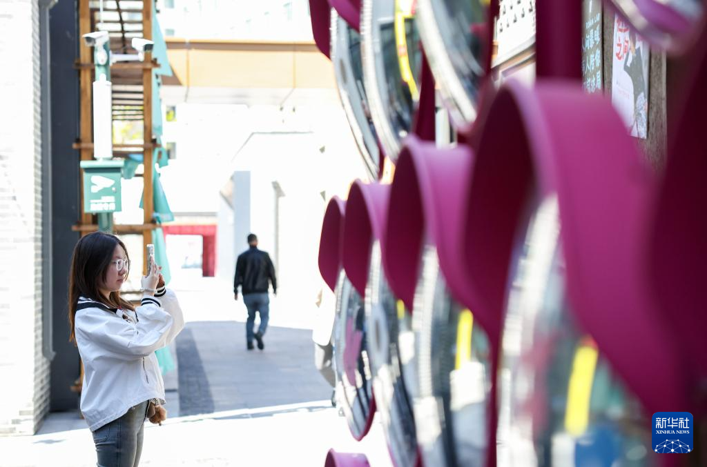4月29日,市民在吉林省长春市商埠地历史文化街区打卡拍照。