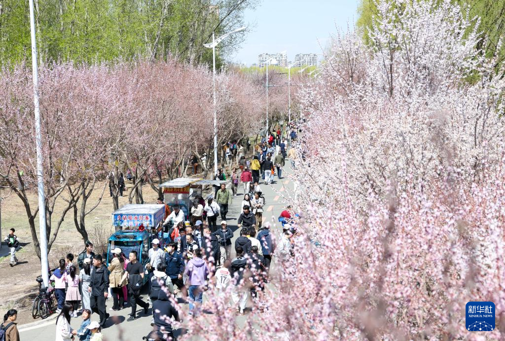 4月26日,市民在长春肆季南河岸线公园游览(无人机照片)。