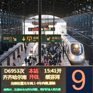 4月29日,旅客在哈尔滨站乘车出行。
