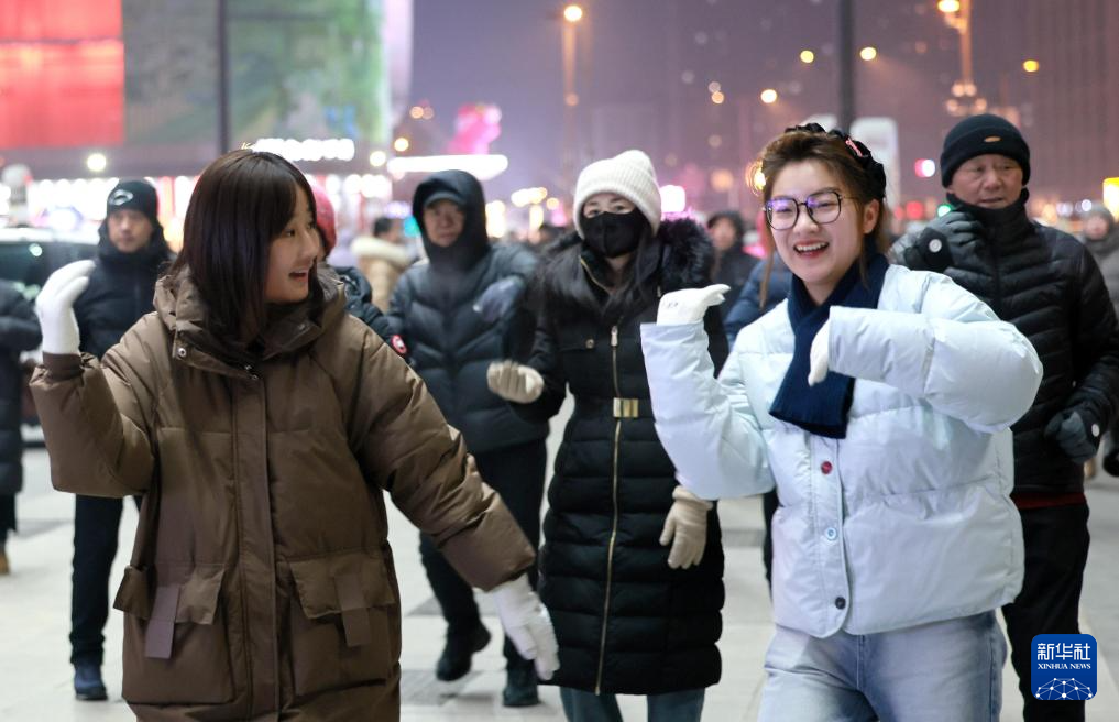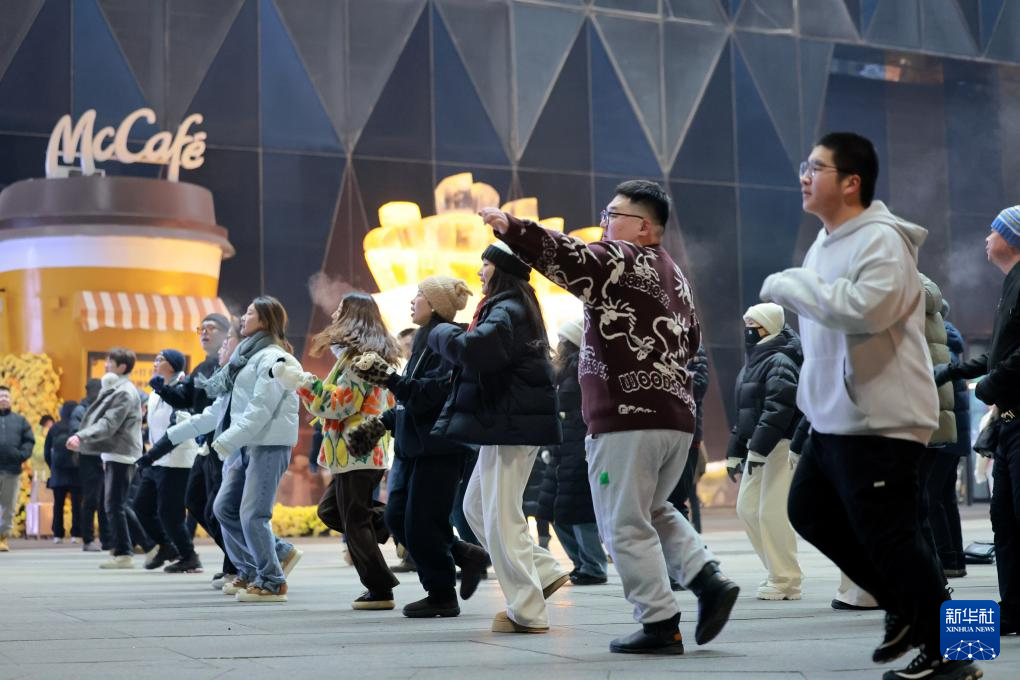2025年1月6日,人们在黑龙江省哈尔滨市哈西万达广场跳广场舞。