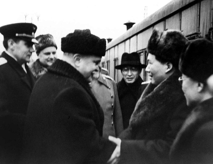 毛泽东访问苏联资料照片。(右二:毛泽东)