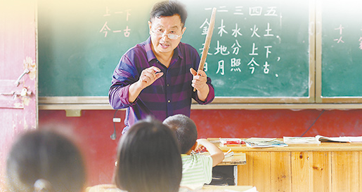 湖南株洲市茶陵县虎踞镇茶干小学,“银龄教师”董朱文在上课。新华社记者 陈泽国摄