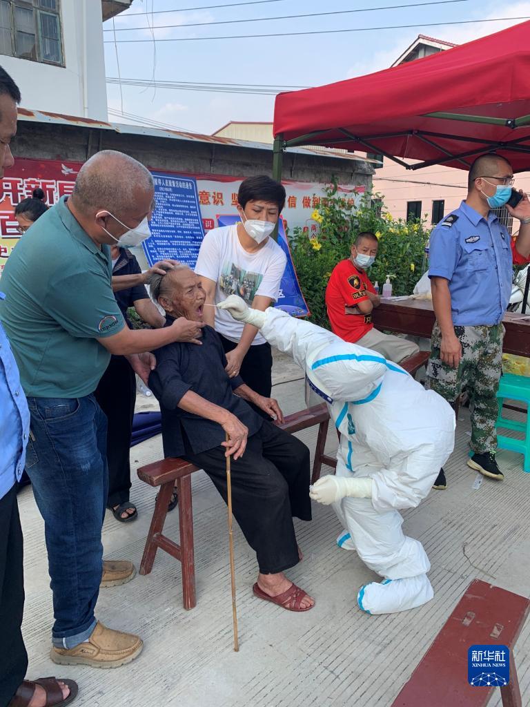 9月14日,厦门大学附属福州第二医院医护人员在仙游一核酸采样点为老年人采样。新华社发