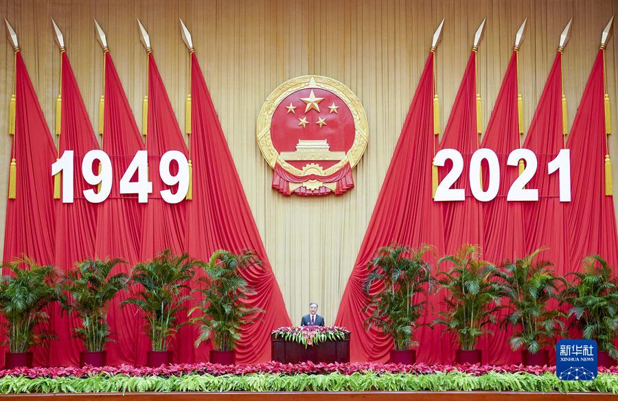 汪洋指出,今年是中国共产党百年华诞,这在党和国家历史上、中华民族历史上都具有极其特殊的意义。习近平总书记在庆祝中国共产党成立100周年大会上发表重要讲话,全面回顾党的百年奋斗征程,鲜明提出伟大建党精神,深刻阐述以史为鉴、开创未来的根本要求,极大激发了全体中华儿女的壮志豪情。中国共产党是有理想有担当、有力量有功绩、有自信有定力的政党,始终把人民放在心中的最高位置,始终把实现民族复兴作为一切奋斗、一切牺牲、一切创造的主题。经过持续奋斗,我们胜利实现了第一个百年奋斗目标,正在意气风发向着第二个百年奋斗目标迈进,每一个中华儿女都有理由为之自豪。只要毫不动摇坚持党的领导,坚定不移走中国特色社会主义道路,紧紧依靠人民群众,加强中华儿女大团结,任何艰难险阻都阻挡不了中华民族迈向伟大复兴的铿锵步伐。