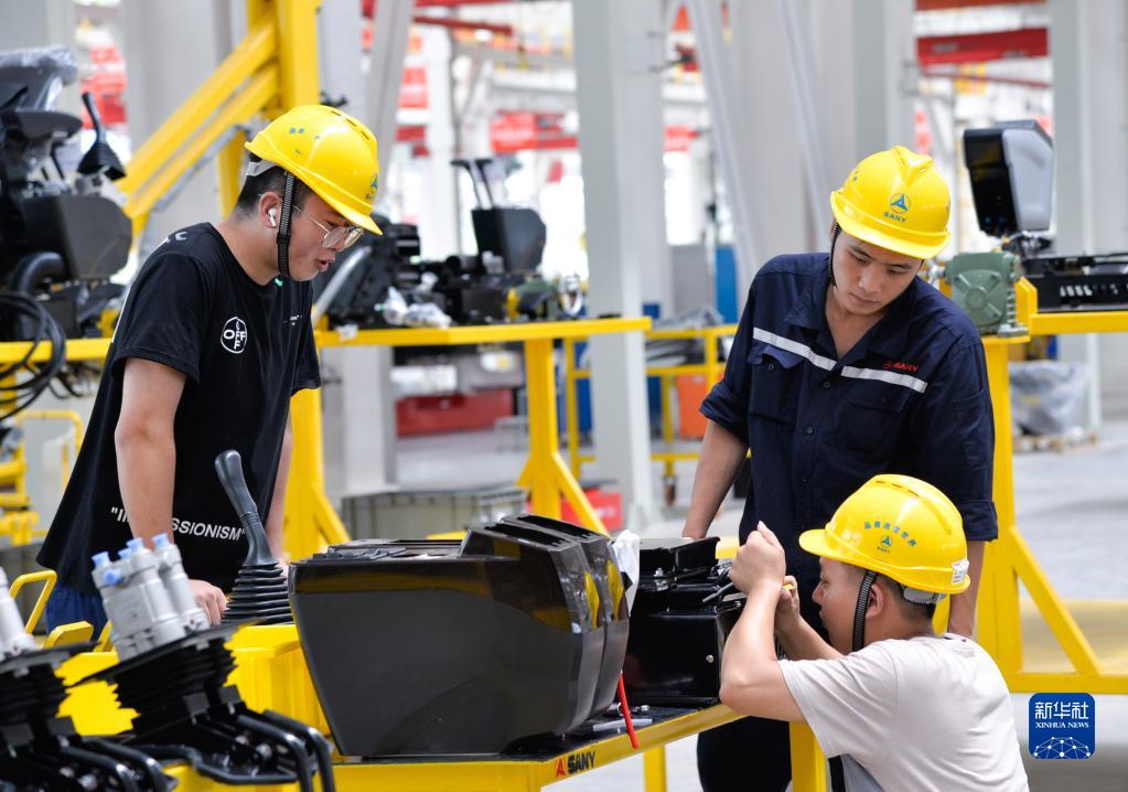 工人在位于重庆两江新区的三一集团西南地区首个智能化“灯塔工厂”项目内作业(7月19日摄)。新华社记者 徐钦 摄