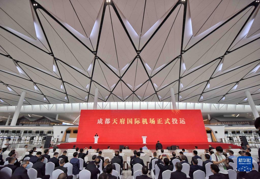 成都天府国际机场正式投运仪式现场(6月27日摄)。新华社记者 刘坤 摄