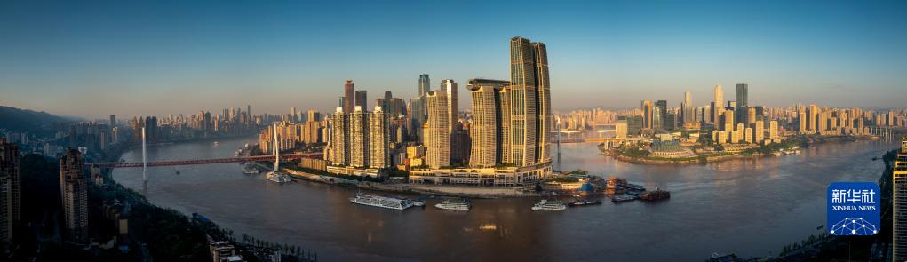 清晨,重庆立体的城市景观与长江、嘉陵江的自然水景交相辉映(9月21日摄)。新华社记者 刘潺 摄