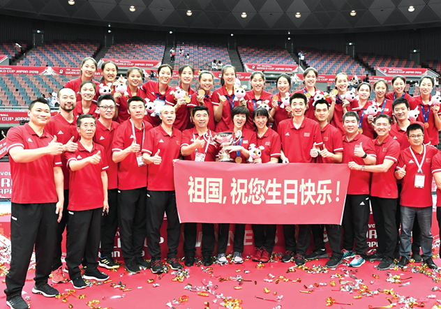 事物发展有其客观规律。作为集体球类项目,中国女排在四十年中获得十次世界冠军非常不易。能够一次次站上最高领奖台,实现升国旗、奏国歌为国争光的目标,离不开袁伟民、邓若曾、张蓉芳、陈忠和、郎平等优秀教练员和一批批女排队员们艰苦卓绝的奋斗,也离不开李耀先、胡进、栗晓峰、蔡斌、王宝泉、俞觉敏等教练员和一代代女排队员为中国女排的发展、女排精神的传承所付出的汗水和努力。从1981年第一次登上世界冠军领奖台,直至2019年获得第十个世界冠军,中国女排永不言败、勇攀高峰,得益于一代代女排将士的接力奋斗,得益于女排精神的代代传承。