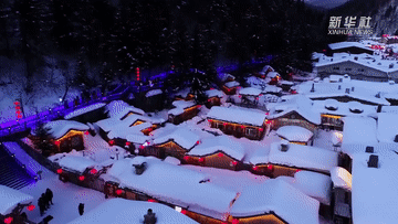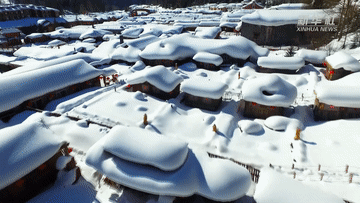 “冰天雪地也是金山银山”。黑龙江省大海林林业局双峰林场,位于牡丹江市海林市长汀镇,冬季雪期长达约7个月,这里木屋错落有致,绵密的积雪覆盖万物,形成“雪帘”“雪蘑菇”等独特景致,素有“中国雪乡”之称。
