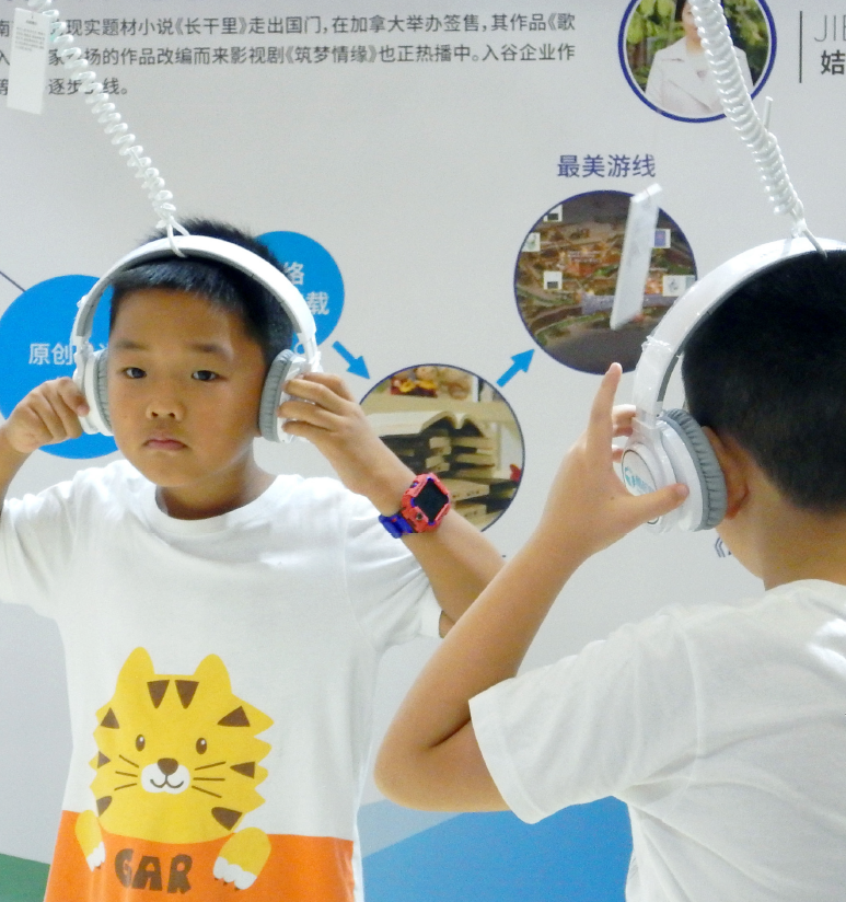 2019年8月31日,南京版博会“网络文学IP专区”,观众走进“耳机森林”聆听精品网文