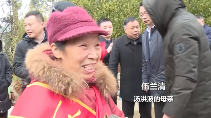 汤洪波的母亲伍兰清抑制不住激动的心情