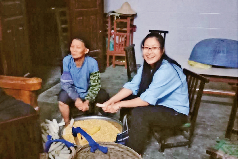 黄文秀研究生毕业后,放弃大城市的工作机会,主动请缨到贫困村任第一书记,把生命奉献给脱贫攻坚事业,谱写了新时代青春之歌。习近平总书记强调广大党员干部和青年同志要以黄文秀同志为榜样,不忘初心、牢记使命,勇于担当、甘于奉献,在新时代的长征路上做出新的更大贡献。图为黄文秀到村民家走访,主动帮村民干农活(资料照片)。 新华社发